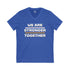 Experience unity and resilience with the Stronger Together V-Neck Tee. This trendy Unisex Jersey Short Sleeve T-Shirt exudes comfort and contemporary style, bringing positivity wherever you go. Perfect for everyday wear, hanging out with friends, or relaxing at home. This tee is perfect for those who believe in the power of community and strength, making it a must-have during pride events, social gatherings, or any day to show your support. Its lightweight, breathable fabric ensures year-round wearability, making it a versatile addition to your wardrobe. Celebrate togetherness and make a statement with this tee!